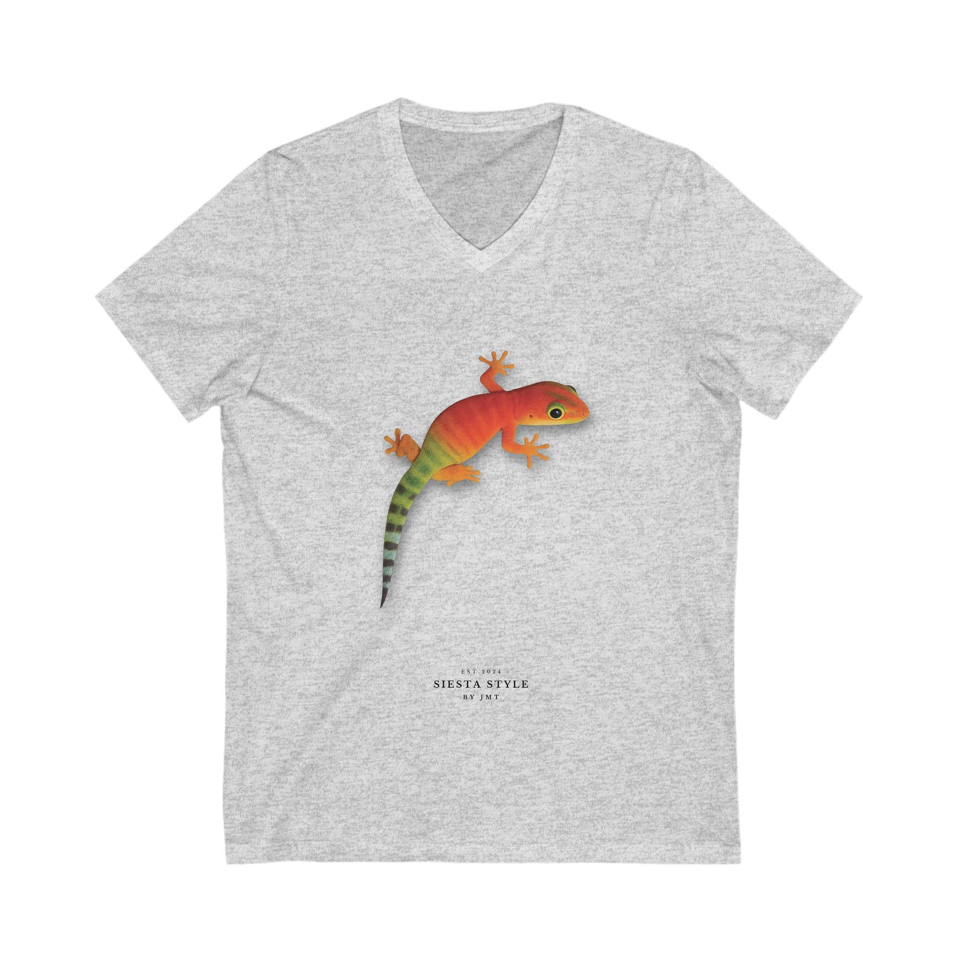 Gecko T-Shirt – Unisex Baumwolle V-Ausschnitt mit tropischem Eidechsen-Print | Siesta Style